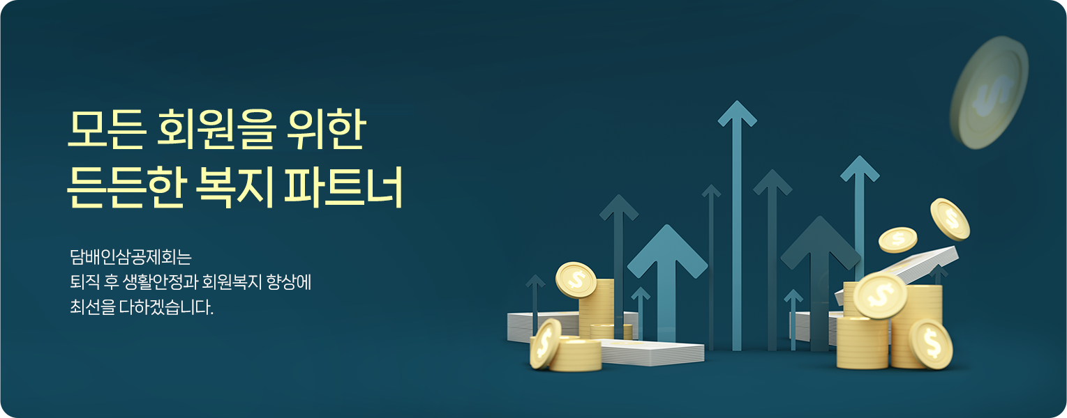 임직원을 위한 든든한 복지 파트너 담배인삼공제회는, 퇴직 후 생활안정과 회원복지 향상에 최선을 다하겠습니다.
